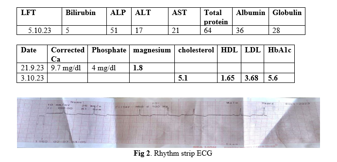 Department of Cardiology of Yangon General Hospital also performed Echocardiogram and commented normal echocardiogram. ECG showed heart block.