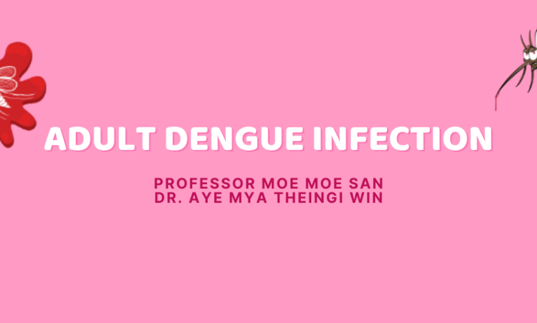 Dengue infection has been ranked as the most important mosquito-borne viral disease with epidemic potential because about half of the world’s population is now at risk1.Moreover, there is a change in epidemiology of dengue in South East Asia countries and shift in affected age groups is evident2. Also in reviewing medical records from Yangon General Hospital, adult dengue patients are increasing year by year3. Since specific antiviral treatment and effective vaccine have not developed yet, adult dengue infection becomes an alarming impact on human health and national economy. So it is very essential to for the clinicians to know more about this disease to diagnose disease in early stage to achieve good outcome.