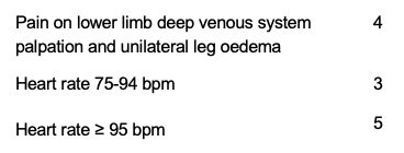 Criteria include the clinical evidence of deep vein thrombosis (DVT), haemoptysis, whether the pulmonary embolism is the most likely diagnosis.