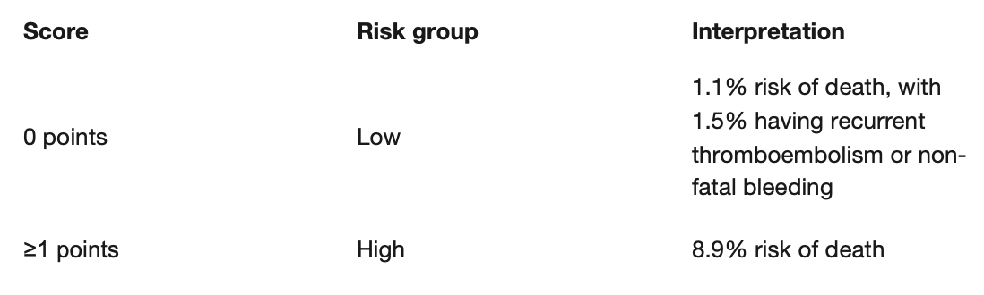 If it is suggestive of very low or low risk, outpatient management of pulmonary embolism can be considered. This is also validated to predict the 30-day mortality risk.