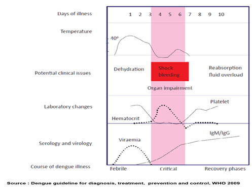 The following figure demonstrate the virological and serological markers in relation to time of dengue infection