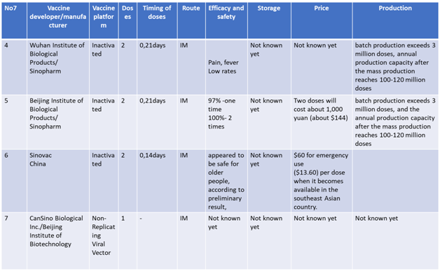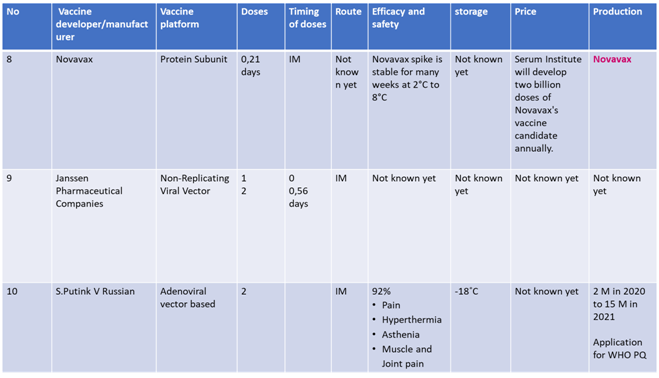 Current status of Vaccines in Phase 3 clinical trials are summarized in following tables 10