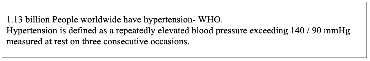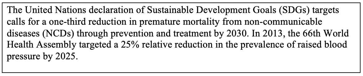 High systolic blood pressure is the leading risk factor for years lost due to ill-health, disability or early death (DALY), estimated to cause 10.7 million deaths and 212 million DALYs globally in 2015 1.and 58% of CVDs in 2013 2