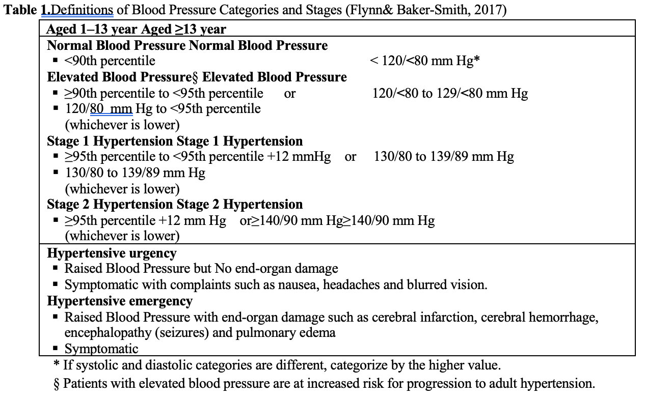 - Flynn JT, Kaelber DC, Baker-Smith CM, et al. Clinical Practice Guideline for Screening and Management of High Blood Pressure in Children and Adolescents. Pediatrics. 2017;140(3):e20171904