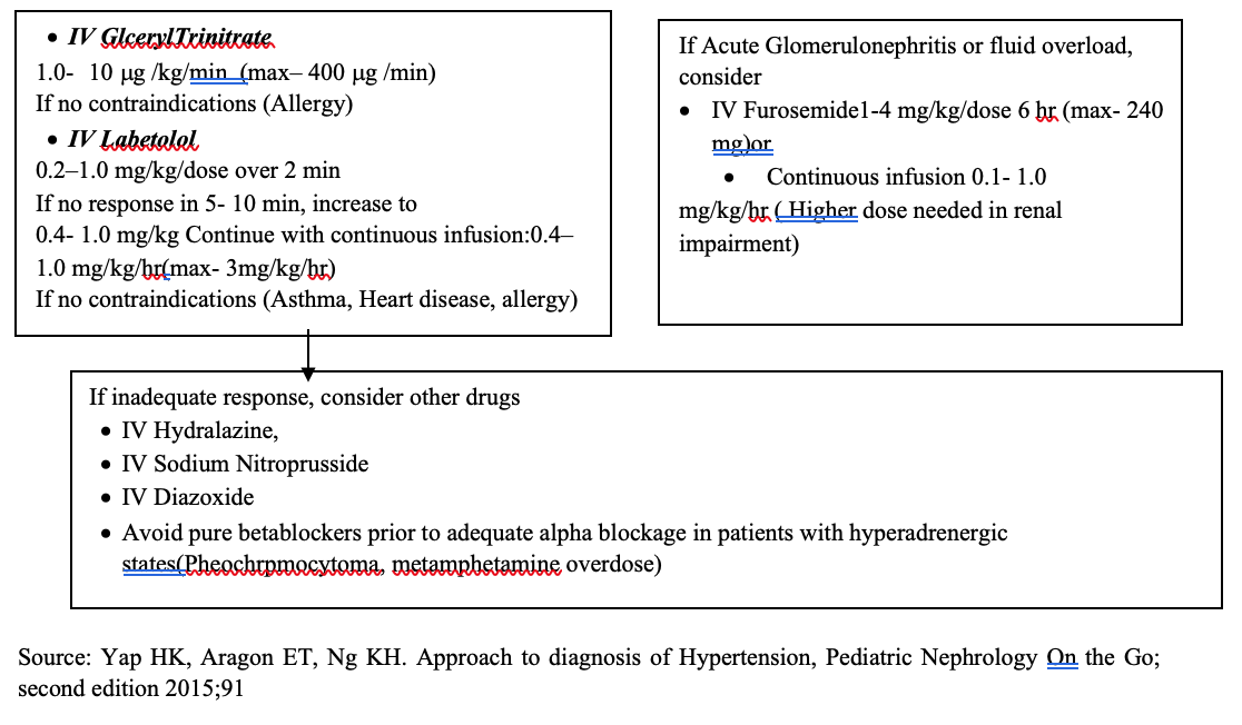 - Pastel NH , Romero SK, Kaelber DC. Evaluation and management of pediatric hypertensive crises: hypertensive urgency and hypertensive emergencies. Open Access Emergency Medicine 2012:4 85-92.