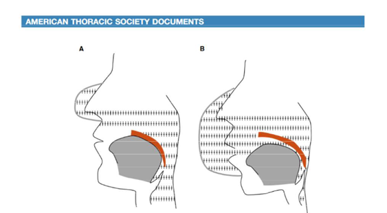 Fig. 2 Potential effect of oronasal continuous positive airway pressure (CPAP) on upper airway patency. (A) Nasal CPAP splints the upper airway and pushes the soft palate against the tongue.(B) Oronasal CPAP may neutralize the splinting effect of nasal CPAP because of the transmission of positive pressure to the mouth (from Ann Am Thorac .Soc Vol 17, No.10 ,Oct 2020).