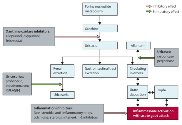 Fig 5: Targets for intervention in the treatment and prophylaxis of gout