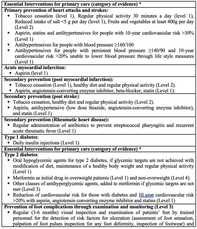 Table 3. Core list of medicines required for implementing essential NCD interventions in primary care
