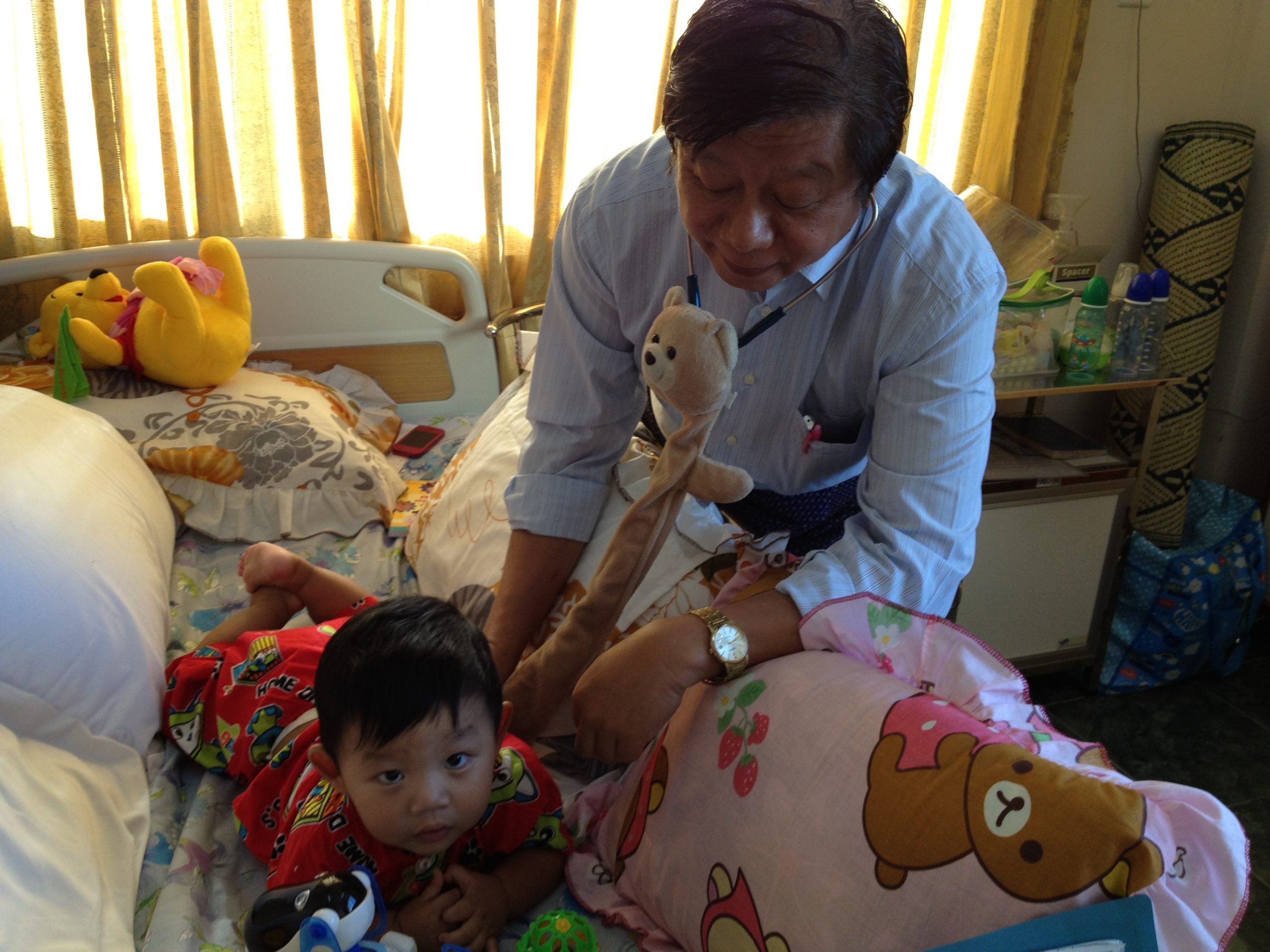 Children are generally very observant and interested in their surroundings. For them, a smiling person is good and a person with a frown is bad whether your inner nature is good or bad. Please wear a smile on your face whether you are under stress or not. Be friendly to the parents and cheerful to the child. Don’t be annoyed if a child is afraid of you and cry, accept it as a normal phenomenon. To examine a child, you should be very gentle. If a child needs to be undressed, let the parent do it rather than the nurses or yourself.