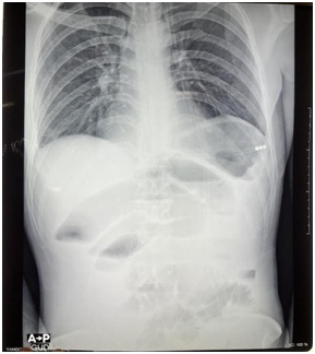Fig1– Plain-X-Ray of abdomen (erect) showing dilated small bowels