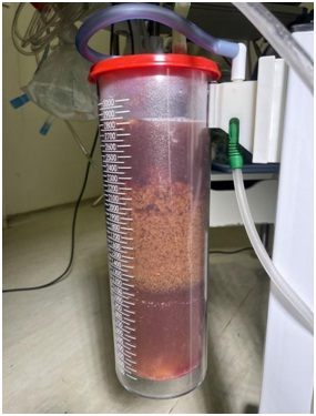 Fig 3– Ryle’s tube output after reduction of hernia and untwisting the small intestine