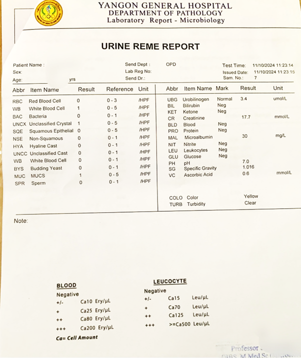 Fig 6. A report on urine routine examination and microscopic examination (REME).
