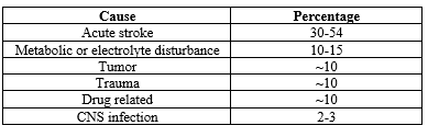 Acute stroke is also a leading cause of acute symptomatic seizures. Other common causes of acute symptomatic seizures are toxic- metabolic events and trauma (Table 2).
