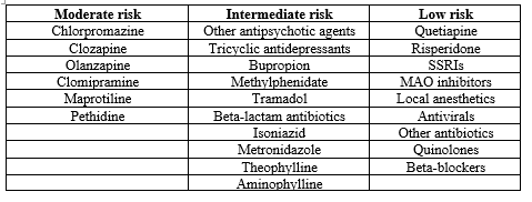 Some drugs can lower the threshold of seizures. The use of several medications in elderly individuals to treat other conditions may contribute to the occurrence of seizures. (Table 3)