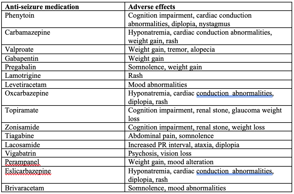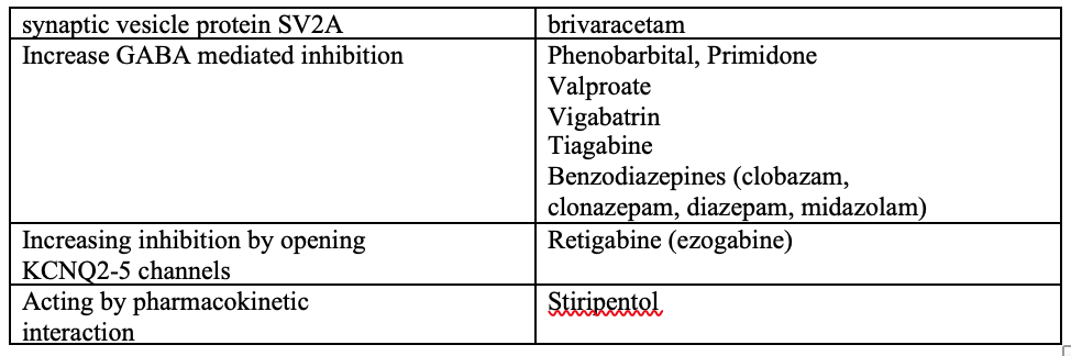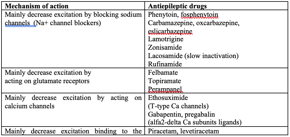 Table 5: Current antiepileptic drugs and suggested mechanism of action